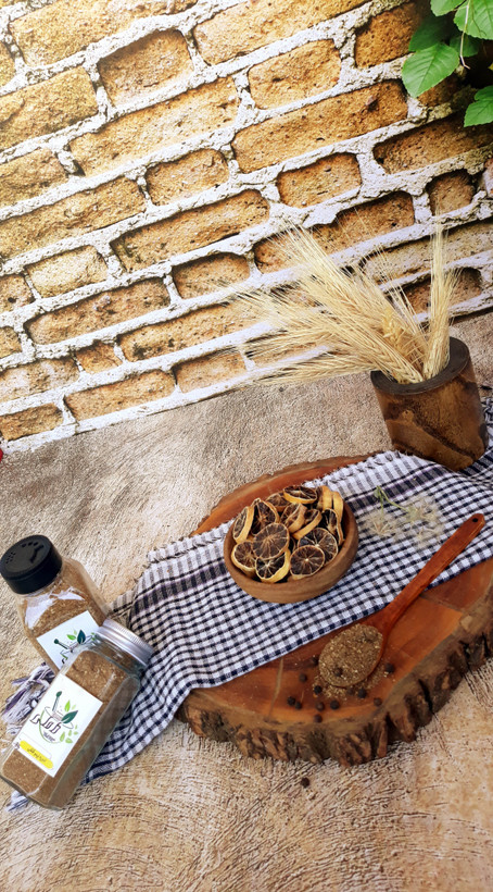 - پودر لیمو عمانی: عطر و طعم لیمویی و کمی ترش را به ترکیب میبخشد.