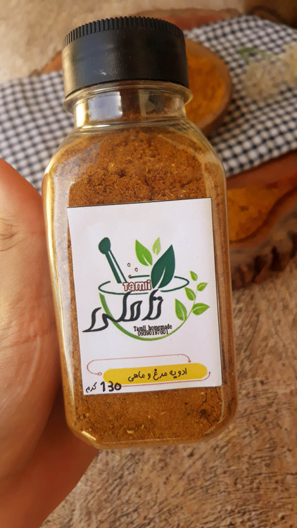 ترکیبات:زرد چوبه،پودر دارچین،پودر پیاز،فلف قرمز،پودر زنجبیل،پودر پیاز، زیره سیاه،میخک،جوز هندی ،هل،تخم گشنیز،برگ بو، جوز هندی ، فلفل بهار و....
