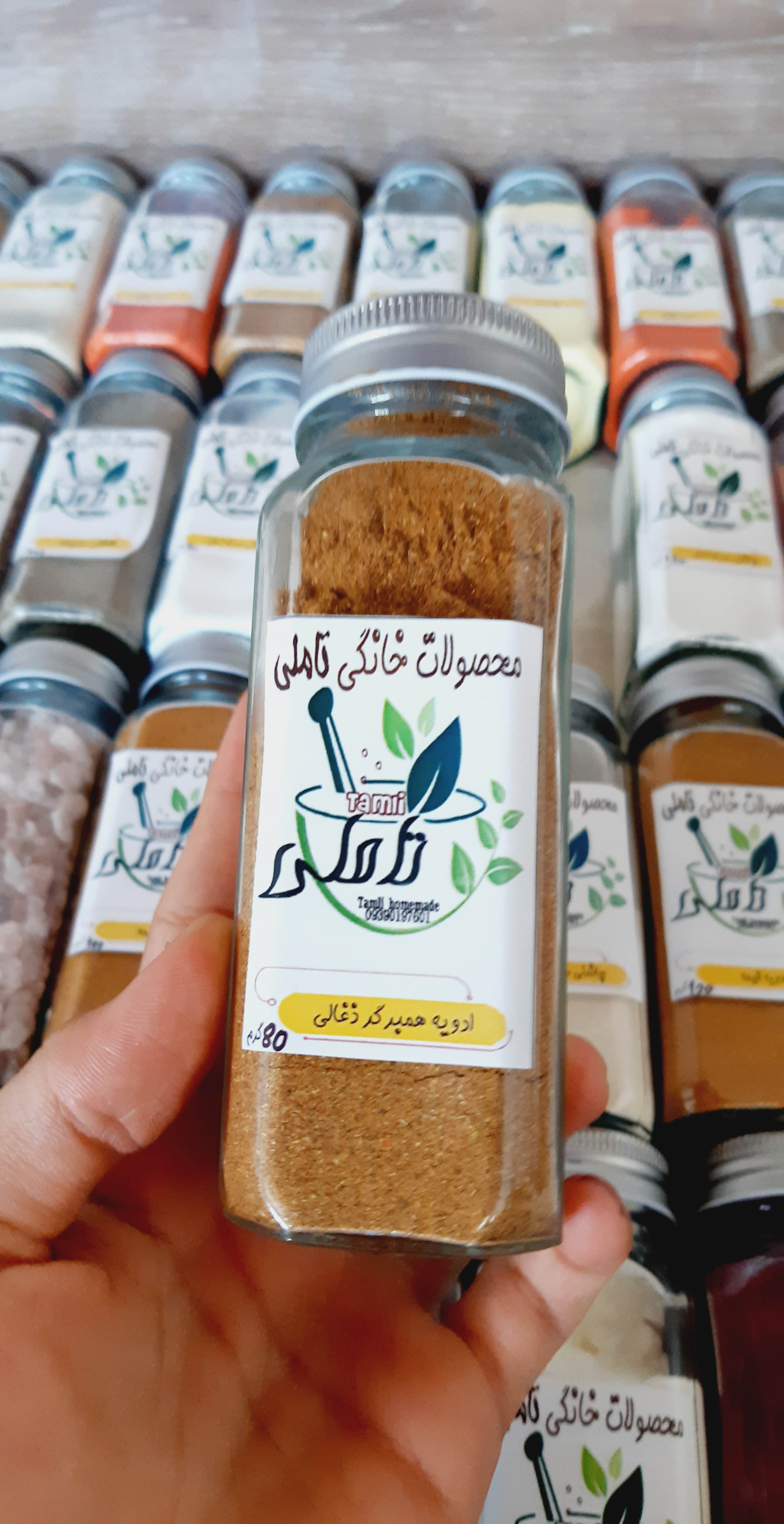 ادویه ترکیبی و خوش عطر و طعم همبرگر متشکل از ترکیباتی با نسبتهای متفاوت از ادویهجاتی مثل پودر سیر، آویشن، ، کاری،تخم گشنیز، ، انواع فلفل، زیره، میخک، جوز و……میباشدمناسب برای عطر و طعمدار کردن همبرگر خانگی مناسب برای متعادل کردن مزاج و طبع همبرگر خانگی